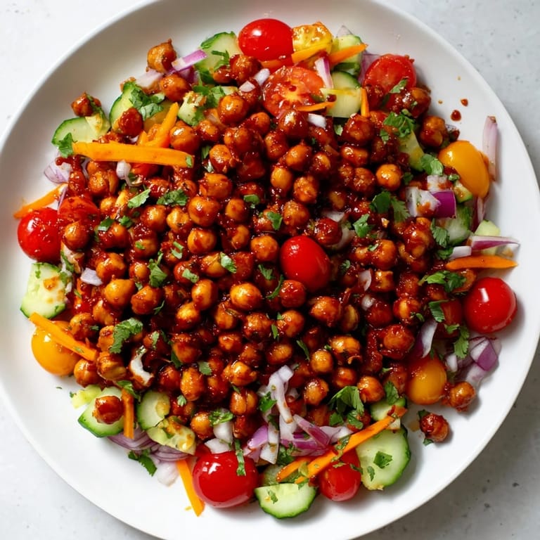 Pin it There's something about a salad that doesn't taste like punishment that makes you actually want to eat your vegetables. I discovered this particular version on a sweltering afternoon when I was supposed to be meal-prepping but mostly just standing in front of the open fridge, willing inspiration to strike. The smell of those chickpeas getting caramelized in BBQ sauce—smoky, a little sticky, deeply savory—pulled me out of my kitchen daze and suddenly I was throwing together everything colorful within arm's reach. What started as desperation turned into something I've made at least once a week ever since.
