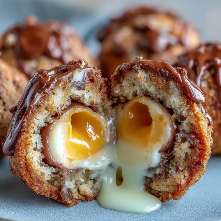Pin it I was sorting through Easter decorations one April when my daughter found a stray Cadbury Creme Egg wedged behind some pastel tissue paper. She held it up with the kind of wonder only kids can muster, and I thought, why are we saving these just for the hunt? That same afternoon, I started experimenting in the kitchen, wrapping cookie dough around those creamy centers, and the moment one came out of the oven with that glossy chocolate shell and oozing golden middle, I knew we'd stumbled onto something special.