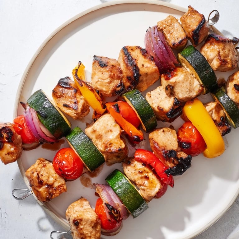 Pin it I still remember the summer afternoon when my neighbor invited us over for a casual backyard gathering, and she pulled out these beautiful skewers loaded with glistening chicken and vibrant vegetables. The moment those hit the grill, the aroma was intoxicating, and everyone gravitated toward the patio like moths to a flame. That's when I realized that skewers weren't just about convenience, they were about creating those golden moments where simple food brings people together.