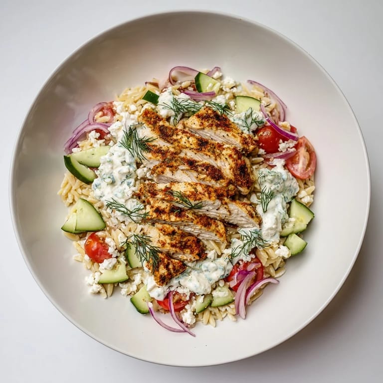 Pin it I threw this bowl together on a Tuesday night when I had leftover orzo and chicken that needed using. The feta-yogurt drizzle was a happy accident—I'd run out of tzatziki and just stirred whatever was in the fridge into some Greek yogurt. It tasted better than anything I'd planned. Now it's the meal I make when I want something bright and filling without much fuss.