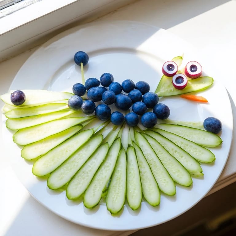 Pin it My daughter came home from school one afternoon buzzing about a book she'd read where animals displayed their most brilliant colors. That night, as I chopped vegetables for dinner, she stood on a stool beside me asking if people could be as beautiful as peacocks. I had no answer, but I had an idea—what if we made one together? Within an hour, our cutting board had transformed into a canvas, and when we arranged those first cucumber slices into a fan, her eyes lit up exactly like I'd hoped.