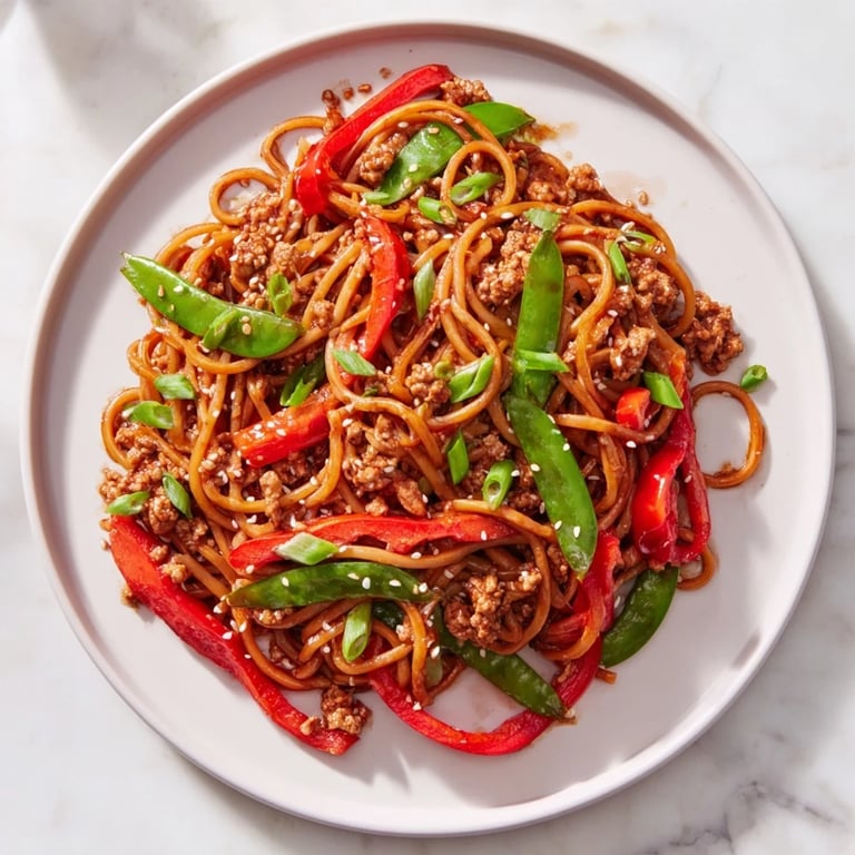 Pin it I threw this together on a Tuesday night when my pantry was half-empty and I had ground chicken thawing on the counter with no real plan. There was linguine in the cupboard, a mostly-full bottle of hoisin sauce from takeout experiments, and some wilted snap peas I refused to waste. What came out of that skillet surprised me so much I stood there eating straight from the pan, twirling noodles with chopsticks while the sesame seeds stuck to my fingers.