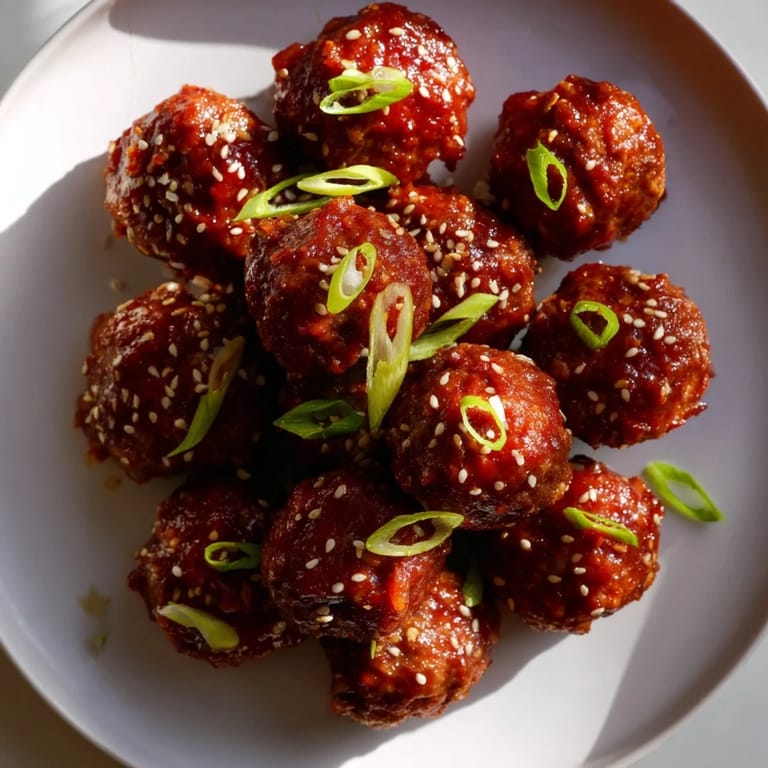 What I love most about these meatballs is their flexibility. Serve them as appetizers with toothpicks at parties, or pile them over steamed jasmine rice to turn them into a complete main course that feels both comforting and impressive. You can also customize them endlessly—ground turkey makes a lighter version that's perfect for health-conscious guests, and ground chicken works beautifully too. For a vegetarian twist, I've experimented with mushroom-based meatballs and surprisingly, they take the glaze just as well. The sriracha-honey sauce is the true star here, so once you master that, you can play with the meatball base according to your preferences or dietary needs.