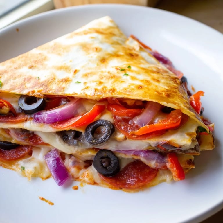 Pin it There's something magical about the moment a tortilla transforms into something completely different—not quite a quesadilla, not quite a pizza, but somehow better than both. I discovered this wrap one lazy weeknight when I was rifling through my pantry, frustrated that I didn't have enough time for real pizza but didn't want to settle for a plain sandwich. The tortilla stared back at me, and I thought: what if I just folded it like an envelope and stuffed it with everything I loved? Twenty minutes later, I was biting into something crispy and cheesy that tasted like I'd actually planned ahead.